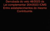 Derrubada do veto 48/2023 da Lei Complementar nº 204/2023 – ICMS entre estabelecimentos do mesmo contribuinte.